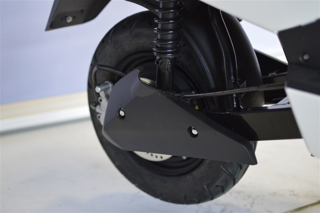La scooter cuenta con un potente motor eléctrico de 3.000 vatios en la rueda que proporciona la capacidad de transportar cargas pesadas.