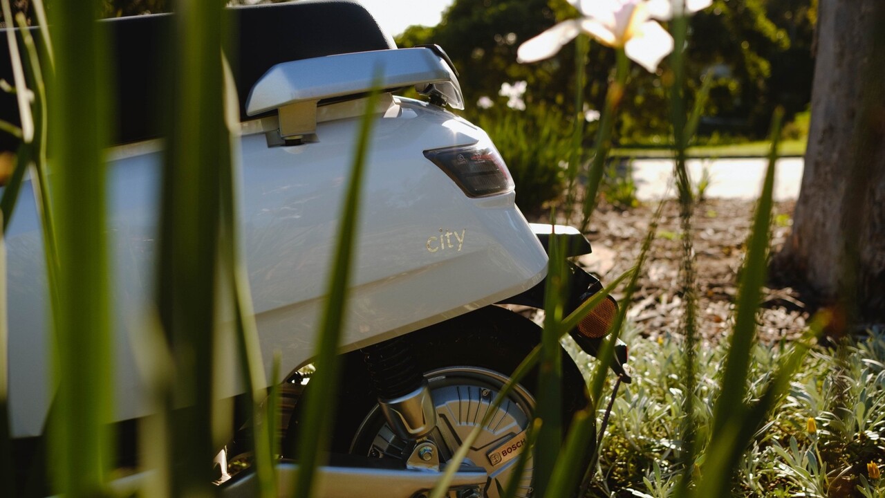 El City scooter tiene un motor eléctrico Bosch de 1.700 vatios (1.000 vatios de potencia máxima) que proporciona una velocidad máxima de 45 km/h.