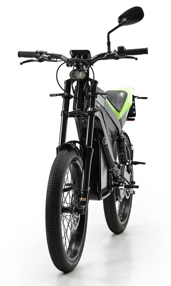 El ciclomotor cuenta con un potente motor eléctrico 2.000 vatios en la rueda trasera con una velocidad máxima limitada de 45 km/h.