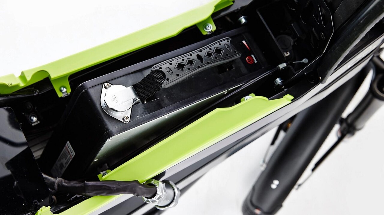 El ciclomotor tiene una batería de litio extraíble con una autonomía de 80 km. El tiempo de carga es de 240 minutos para una carga del 80%.