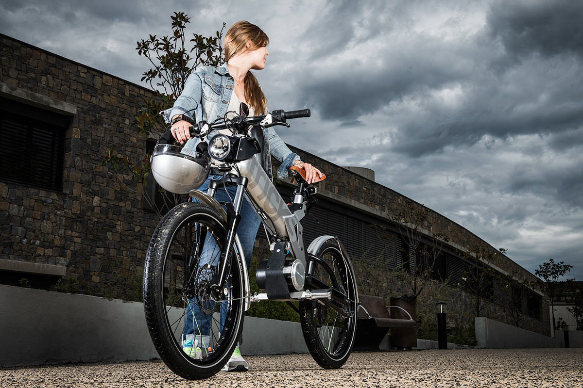El ciclomotor cuenta con un chasis monoviga de aluminio aeronáutico y pesa solo 39 kg.