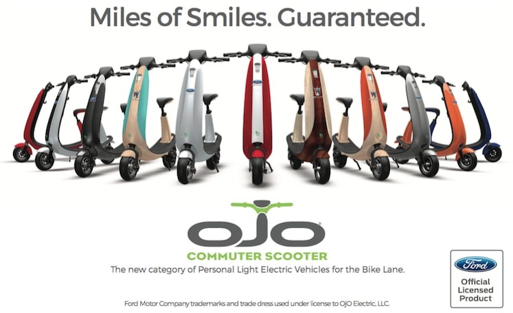 El patinete eléctrico Ford OjO fue originalmente desarrollado por la startup californiana de patinetes eléctricos OjO Electric y fue adquirido en 2017 por el fabricante de automóviles estadounidense Ford para añadirlo como una opción de movilidad inteligente. El Ford OjO Commuter Scooter es ligero (30 kg) y Ford ha anunciado que está trabajando en una versión plegable. El patinete está diseñado para desplazamientos rápidos y eficientes en ciudades congestionadas y campus empresariales.