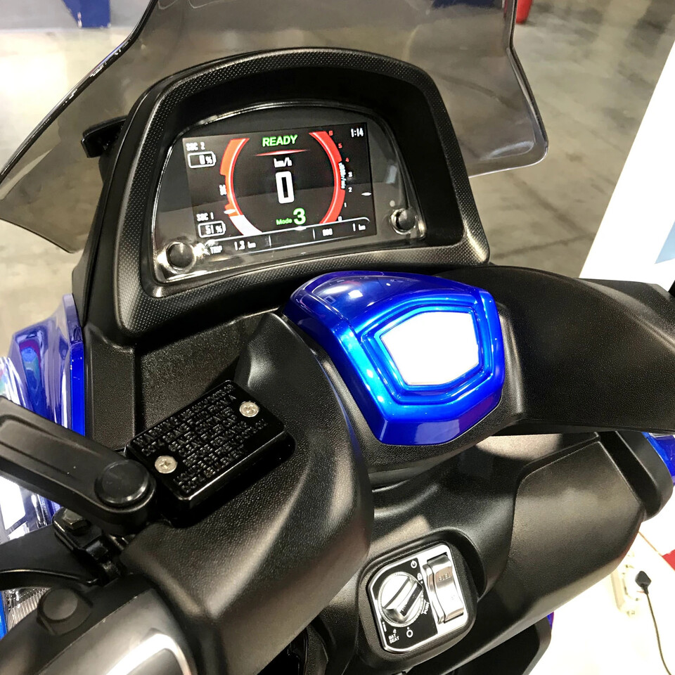 El escúter está disponible en varios colores y se puede equipar con un baúl superior.