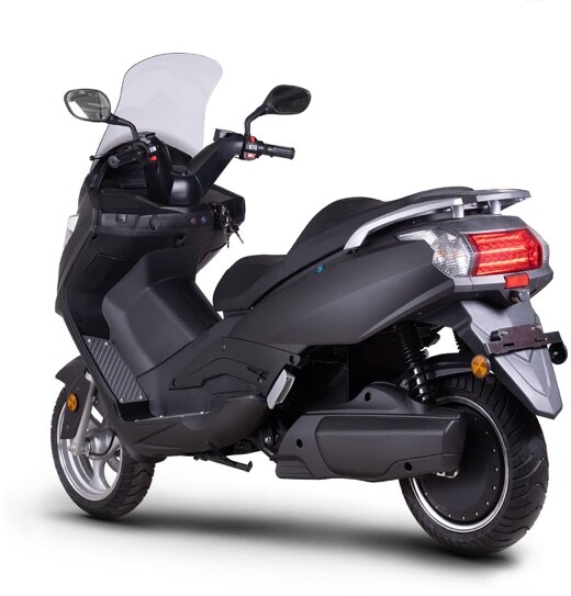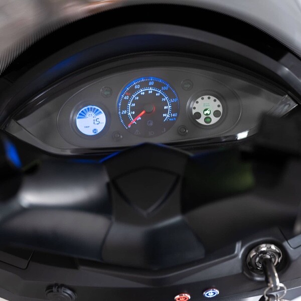 El scooter cuenta con un potente motor eléctrico de 9.900 vatios (17.000 vatios de potencia máxima) para alcanzar una velocidad máxima de 120 km/h.