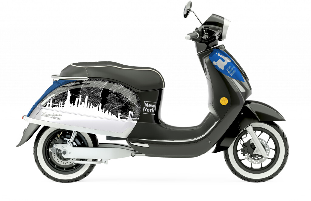 La scooter ofrece espacio para tres baterías de litio intercambiables con un alcance total de 120 km (40 km por batería).