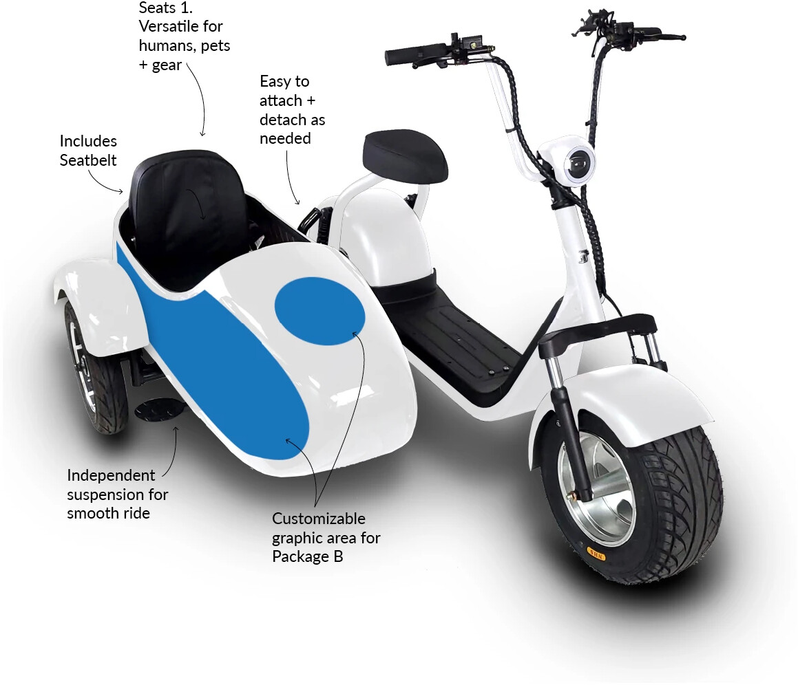 El Phat Scooters Wingman Sidecar es un Scooter Eléctrico de neumáticos gruesos de alta calidad fabricado por la startup de patinetas eléctricas Phat Scooters de EE.UU. La compañía fue fundada en 2017 por tres amigos con el objetivo compartido de descubrir una forma divertida y sencilla de reducir los costos de combustible en distancias cortas.