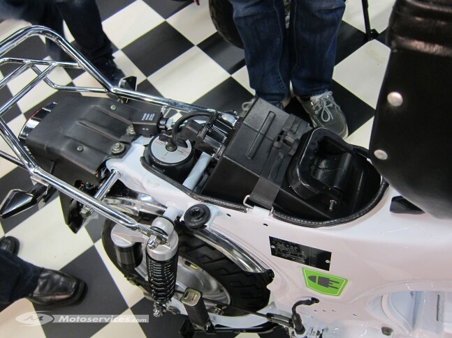 El ciclomotor tiene una batería de litio intercambiable con una autonomía de 70 km. Se puede equipar con una batería adicional para extender la autonomía otros 70 km (alcanzando un total de 70 km).