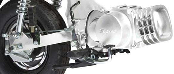 El ciclomotor cuenta con un motor eléctrico de 800 vatios en la rueda, con una velocidad máxima de 45 km/h.