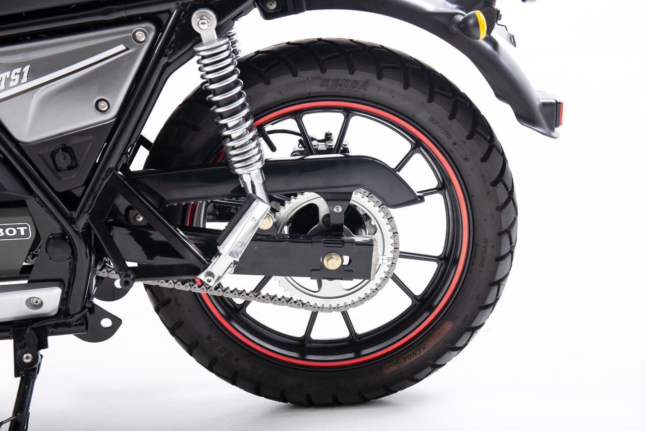 El ciclomotor tiene un potente motor eléctrico 4.000 vatios para una velocidad máxima restringida de 45 km/h. Sin restricción de velocidad, la velocidad máxima es mucho más alta.