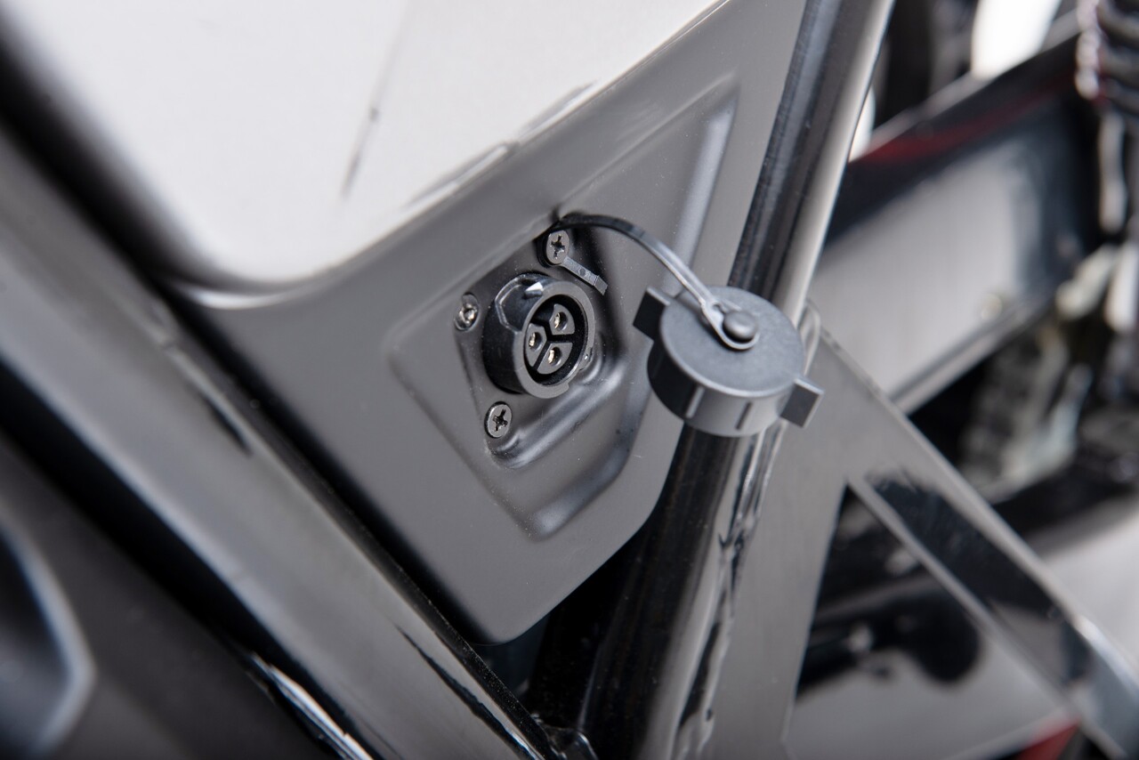 El ciclomotor ofrece un puerto de carga USB para un teléfono móvil.