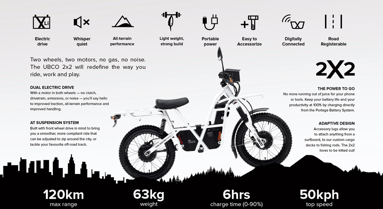 La edición 2x2 3 Wise Men es un Ciclomotor Eléctrico innovador del fabricante de ciclomotores eléctricos UBCO en Nueva Zelanda, en colaboración con la famosa marca de ropa masculina 3 Wise Men. El UBCO 2x2 se mueve con belleza.