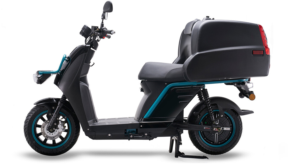El scooter tiene dos baterías de litio extraíbles con un alcance máximo de 280 km. Las baterías están disponibles en múltiples tamaños desde 70 Ah hasta 70 Ah. Son de alta calidad y del mismo tipo que las baterías del Tesla Model S.