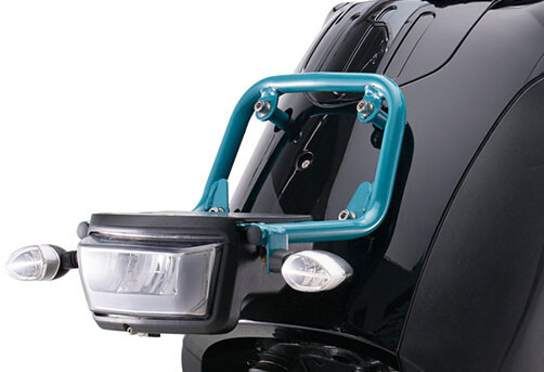 El scooter está disponible con una amplia gama de cajas de entrega, portaequipajes y cestas. También está disponible como scooter de entrega postal con grandes bolsas de papel y como scooter policial o de seguridad.