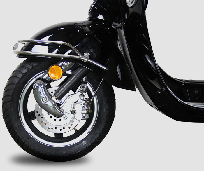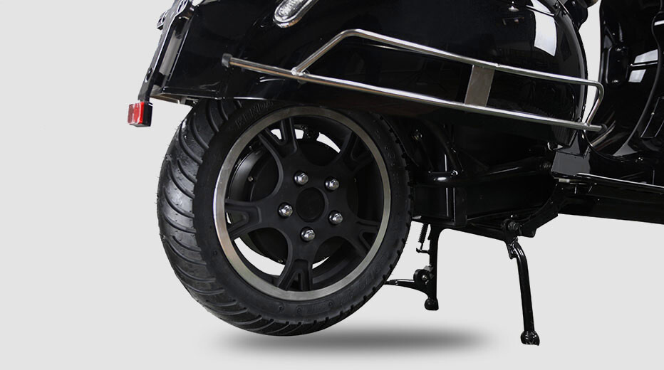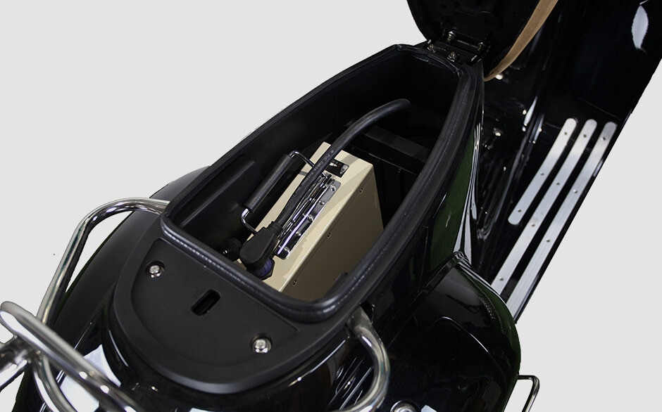 El scooter tiene dos baterías de litio extraíbles con una autonomía de 100 km. Las baterías son de alta calidad y son del mismo tipo que las utilizadas en el Tesla Model S.